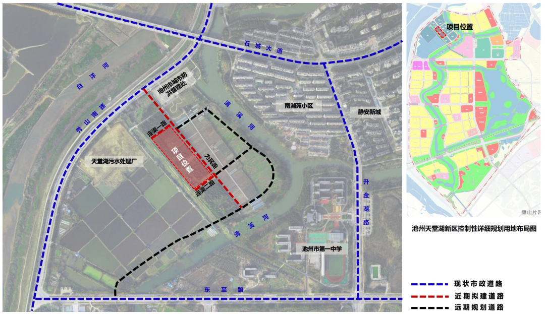 池州城市市政公服基地(一期)EPC總承包項目位于池州天堂湖新區北部區域,秀山南路以南、清溪河以西、天堂湖污水處理廠以東。主要建設內容為公交停保站,用地面積約29939㎡,建設附屬用房、維修工間、配電房各一棟。