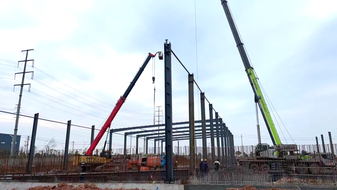 公用型保稅倉庫項目于2023年12月初正式開工建設,項目建成后主要提供各種有色金屬及大宗散貨礦產品的倉儲,報關,報檢,報稅及物流配送等服務。復工以來,全體工作人員精神飽滿,拿出了開工即決戰、起步即沖刺的精神狀態投入到項目施工中。目前保稅倉庫鋼結構鋼柱鋼梁已搭設完成,其附屬設施中制樣間、地磅棚、沉淀池基礎筏板等基礎設施已基本完成。商發公司將掛圖作戰、打表推進公用型保稅倉庫項目建設,確保項目早建成、早投運、早見效。