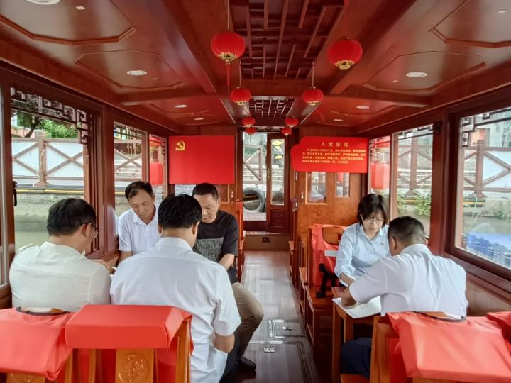 孝肅街置業有限公司支部全體黨員走進清溪河“紅船”,圍繞支部黨建品牌“孝肅先鋒,紅船領航”開展黨紀教育學習。此次黨紀教育學習選擇在“紅船”舉行,是讓支部全體黨員切身感受“紅船”精神和革命先輩的初心和使命,激發全體黨員更加深刻領會黨紀的精神實質和核心要義。學習活動結束后,支部全體黨員全體起立,面對黨旗重溫了入黨誓詞。大家紛紛表示“紅船精神”是中國革命精神之源,要堅定理想信念,為公司高質量發展做出應有的貢獻。